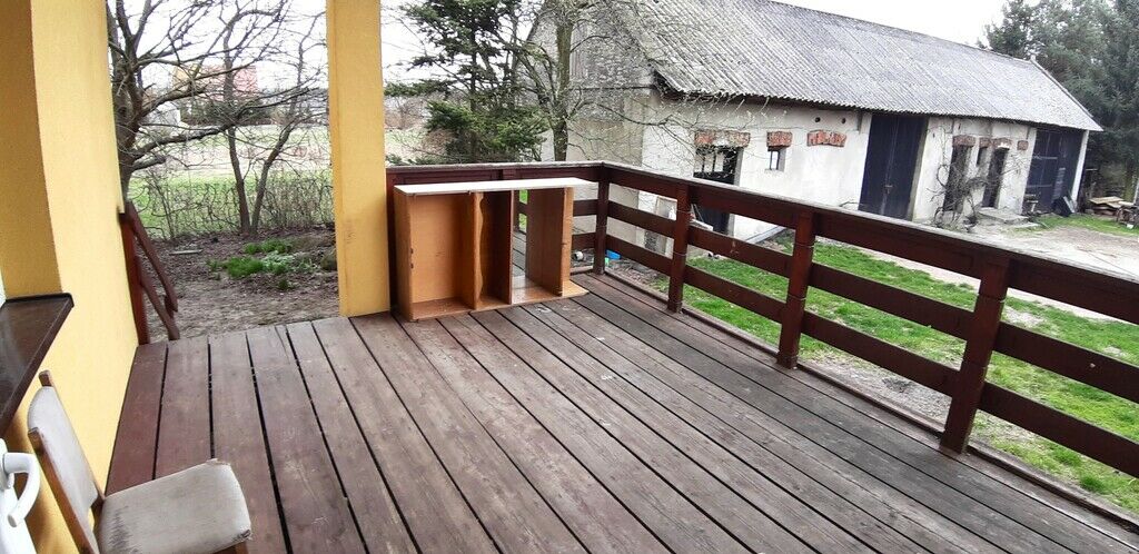 widokiem na podwórko i okoliczne pola i lasy,